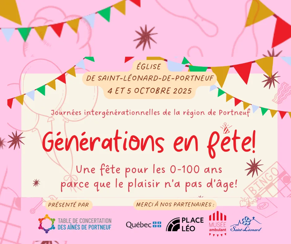 Jeunes, grands-parents, familles, voisins, rejoignez-nous pour un événement chaleureux, drôle et inspirant où l’on crée des souvenirs ensemble, pour s’amuser, peu importe l’âge! Générations en fête rassemblera petits et grands pour un événement qui valorise les échanges et le plaisir d’être ensemble. Ce sera l'occasion de partager ses souvenirs, d’en créer de nouveaux et de célébrer toutes les générations, le tout dans une ambiance ludique et festive.